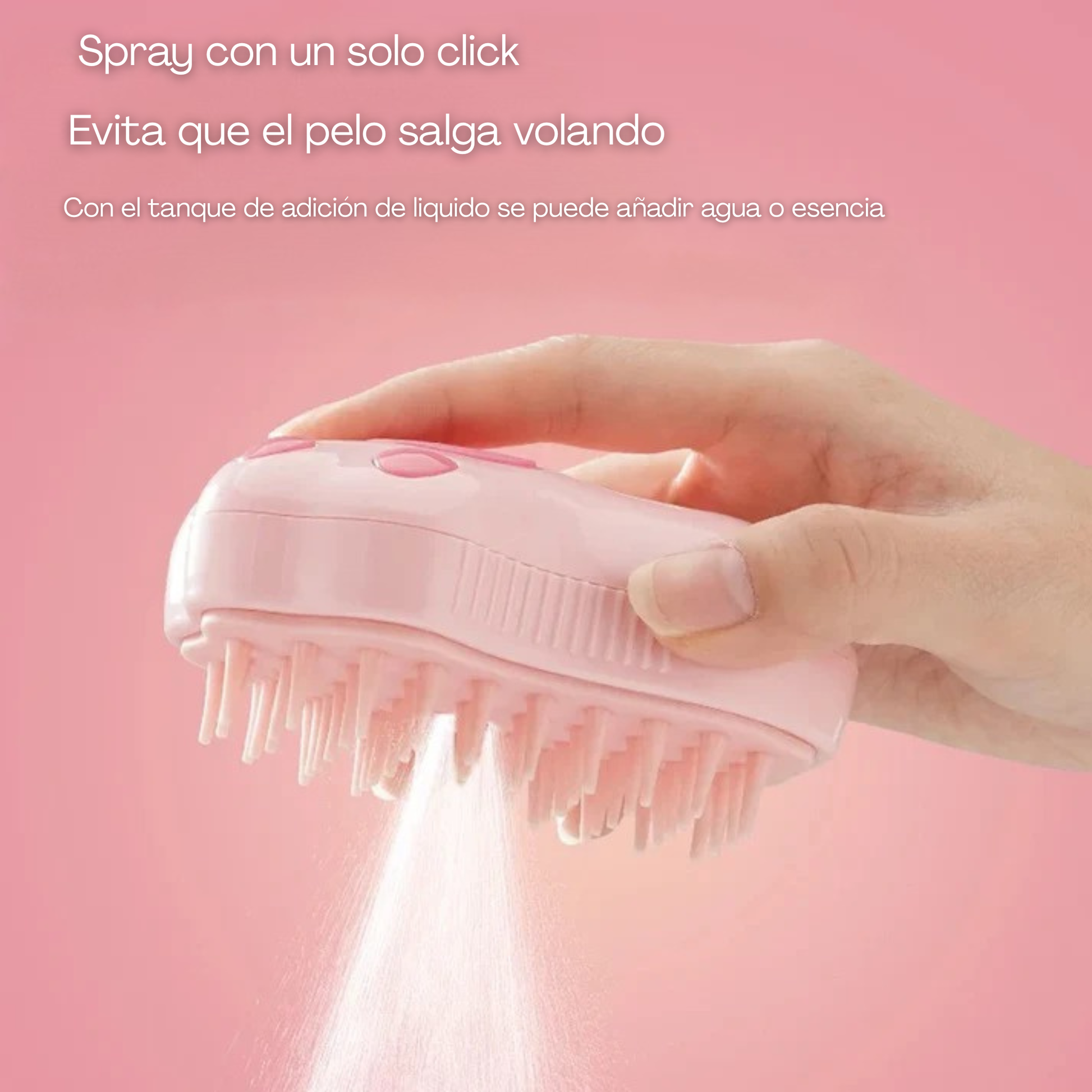 Cepillo, masajeador y removedor de pelo con spray integrado